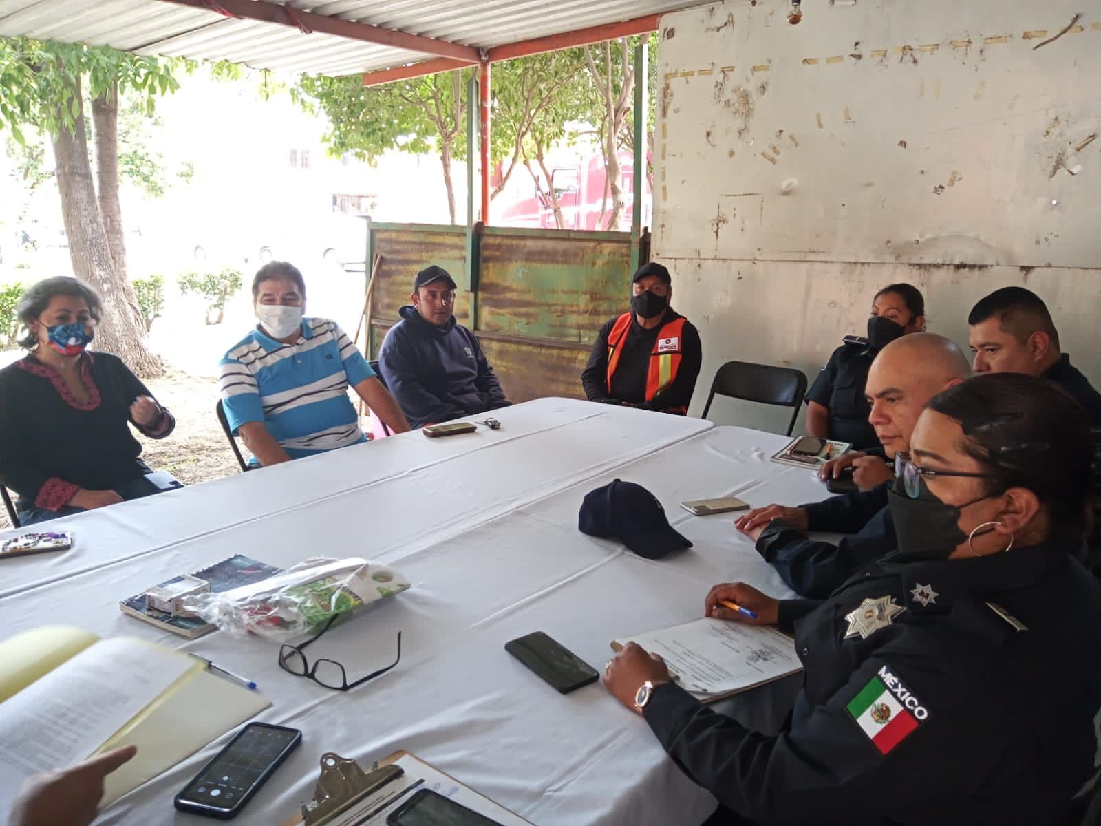 En esta reunión de seguimiento participaron vecinas y vecinos de la unidad habitacional “Las Animas”, el director de seguridad, Israel Jasso, el supervisor operativo, José Antonio Mondragón, y las integrantes de la unidad de prevención del delito de la corporación.