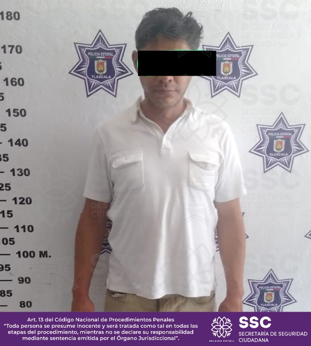 Tlaxcala, Tlax., a 14 de agosto 2023 (Redacción).-La Secretaría de Seguridad Ciudadana (SSC), a través de la Delegación Apizaco, aseguró a un masculino identificado como Benjamín N., de 38 años de edad, por incurrir en el delito de portación ilegal de un arma de fuego.