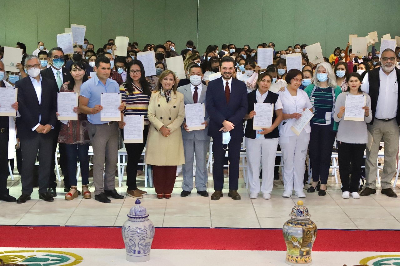 Tlaxcala, Tlax., a 31 de mayo de 2022 (Redacción).- La gobernadora Lorena Cuéllar Cisneros y el director general del Instituto Mexicano del Seguro Social (IMSS), Zoé Robledo, entregaron oficialmente 300 plazas de trabajo a personal médico y de enfermería que cumplieron con el proceso para integrarse al Programa IMSS-Bienestar.