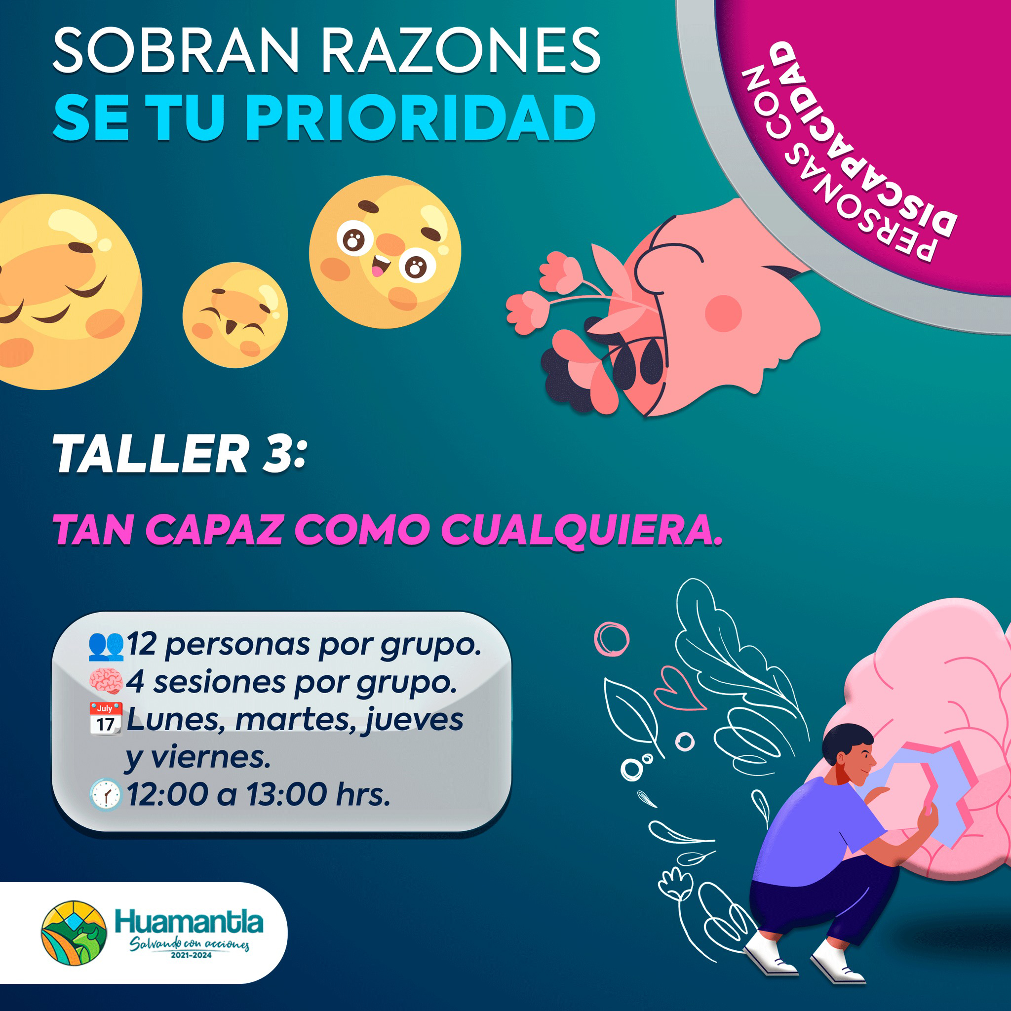 El taller “Tan capaz como cualquiera”, dirigido a personas con discapacidad, será de 12:00 a 13:00 horas