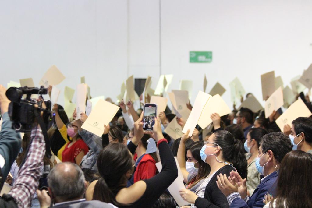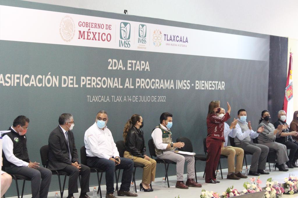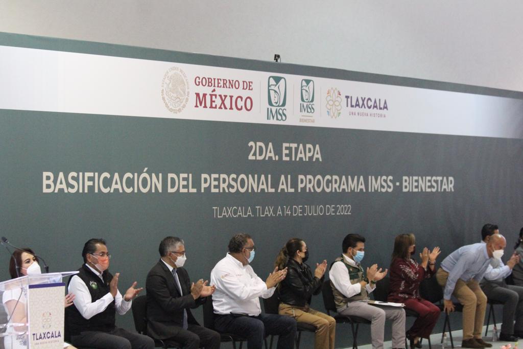 Tlaxcala, Tlax., a 14 de julio de 2022 (Sandra Escobar/Viridiana MS).- Esta mañana la mandataria Lorena Cuéllar Cisneros,  realizó la segunda etapa de basificación de personal de salud del programa IMSS-BIENESTAR en la entidad; esto en compañía del director general del IMSS Zoé Robledo y el titular del Instituto de Salud para el Bienestar Juan Antonio Ferrer