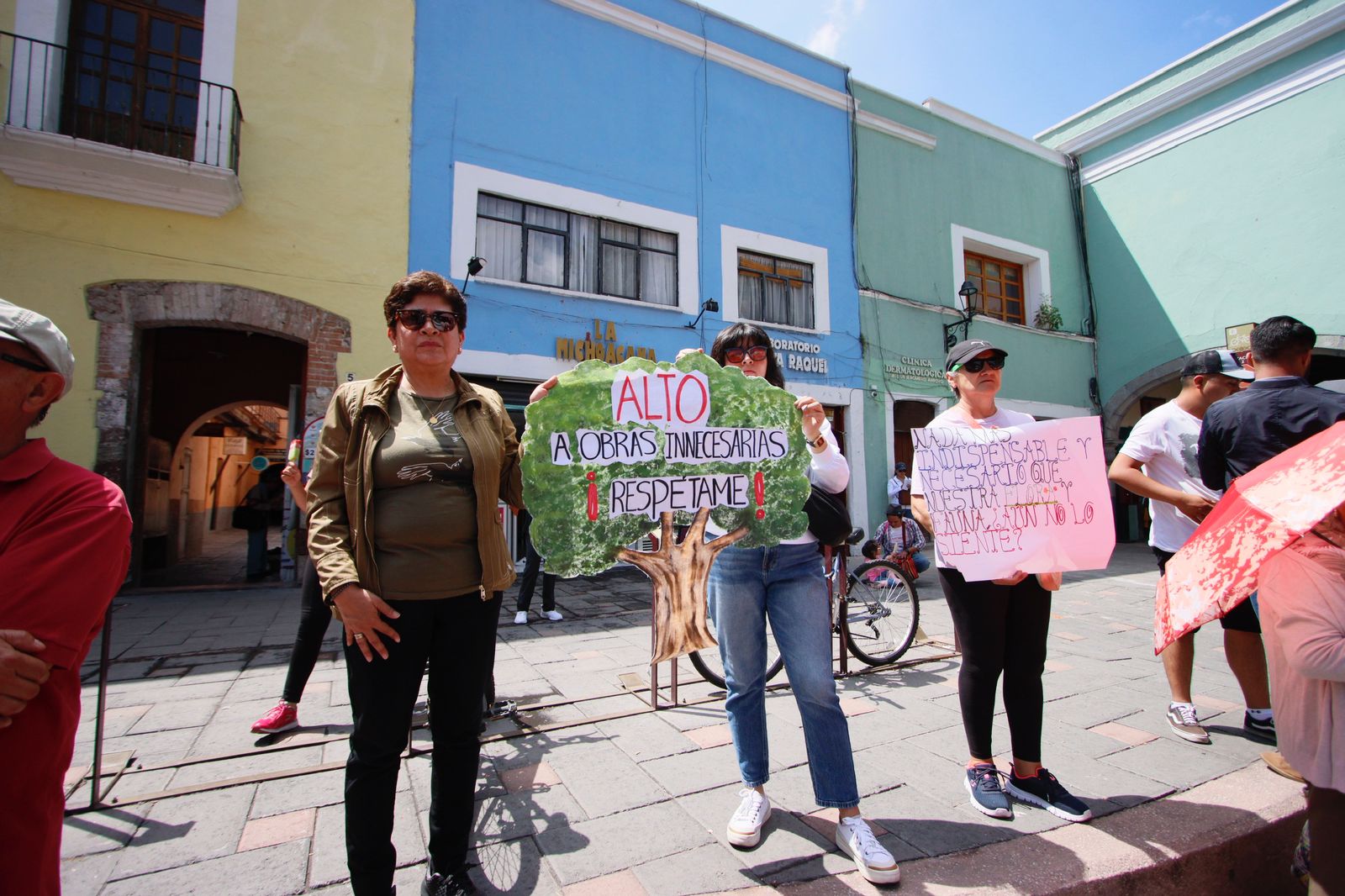 Tlaxcala, Tlax., a 01 de julio 2023 (Richard Castillo).-. Esta mañana un grupo de ciudadanos se manifestaron a las afueras del Palacio de Gobierno, para exigir a la mandataria estatal cancelar el proyecto del Autotren, a fin de evitar la tala de árboles ubicados en el bulevar Guillermo Valle.