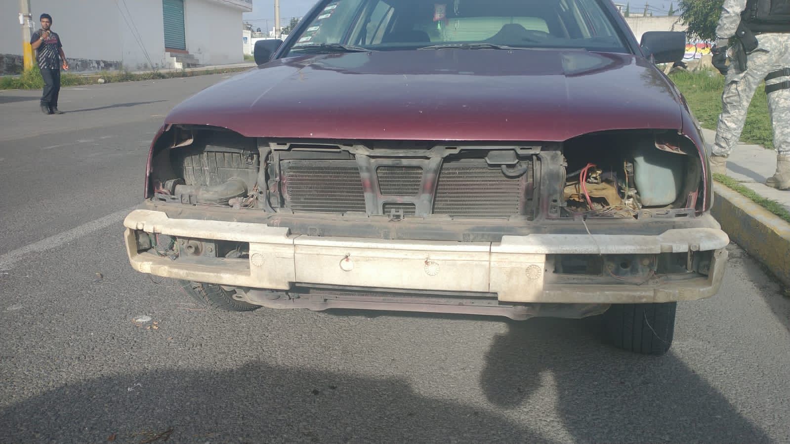 Lo anterior sobre calle Pensamientos, cuando los elementos municipales se percataron de la presencia de un automóvil con huellas de desvalijamiento, por lo que de inmediato se acercaron para revisarlo.
