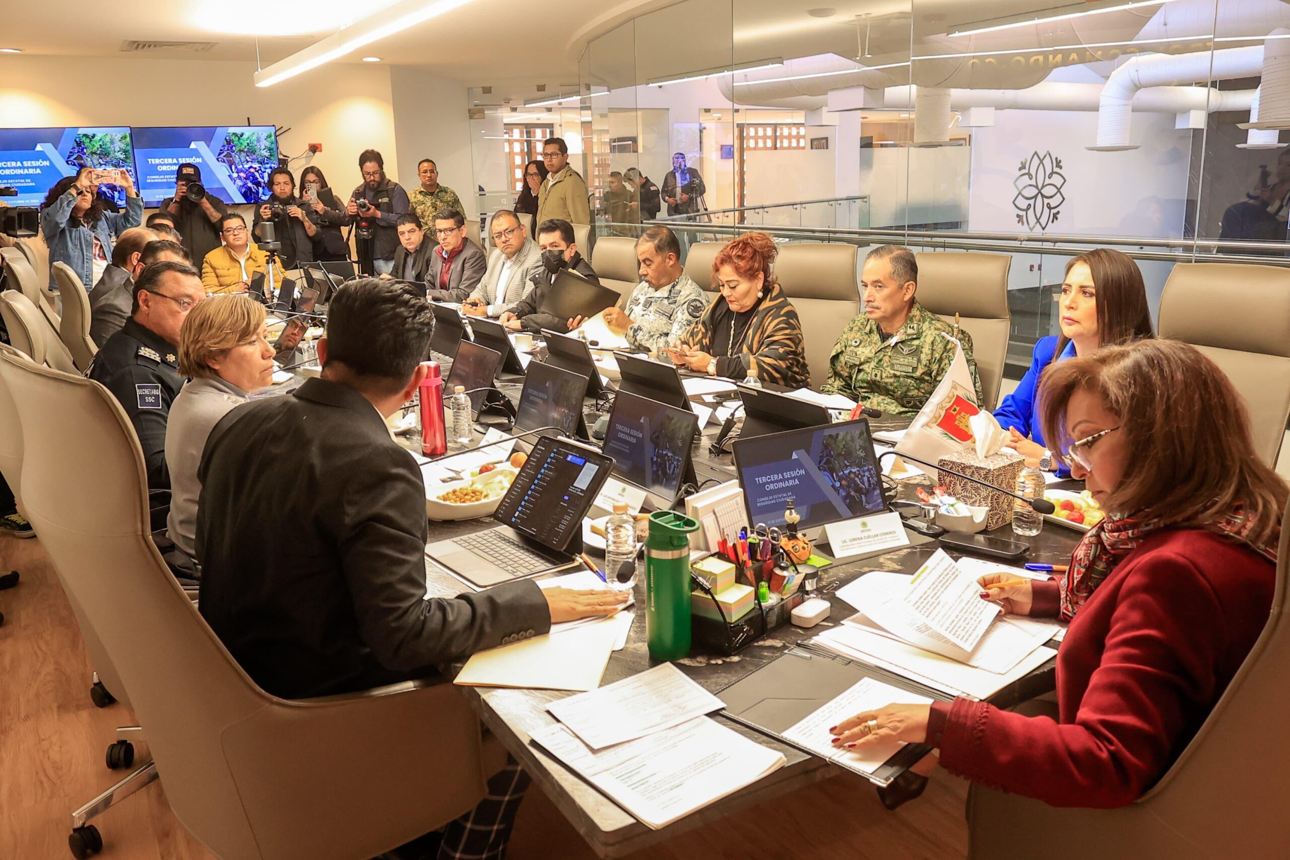 Tlaxcala, Tlax; a 10 de octubre del 2024 (Redacción).- Integrantes del Consejo Estatal de Seguridad Ciudadana de Tlaxcala, encabezados por la gobernadora del estado, Lorena Cuéllar Cisneros, realizaron la tercera sesión ordinaria este jueves 10 de octubre.