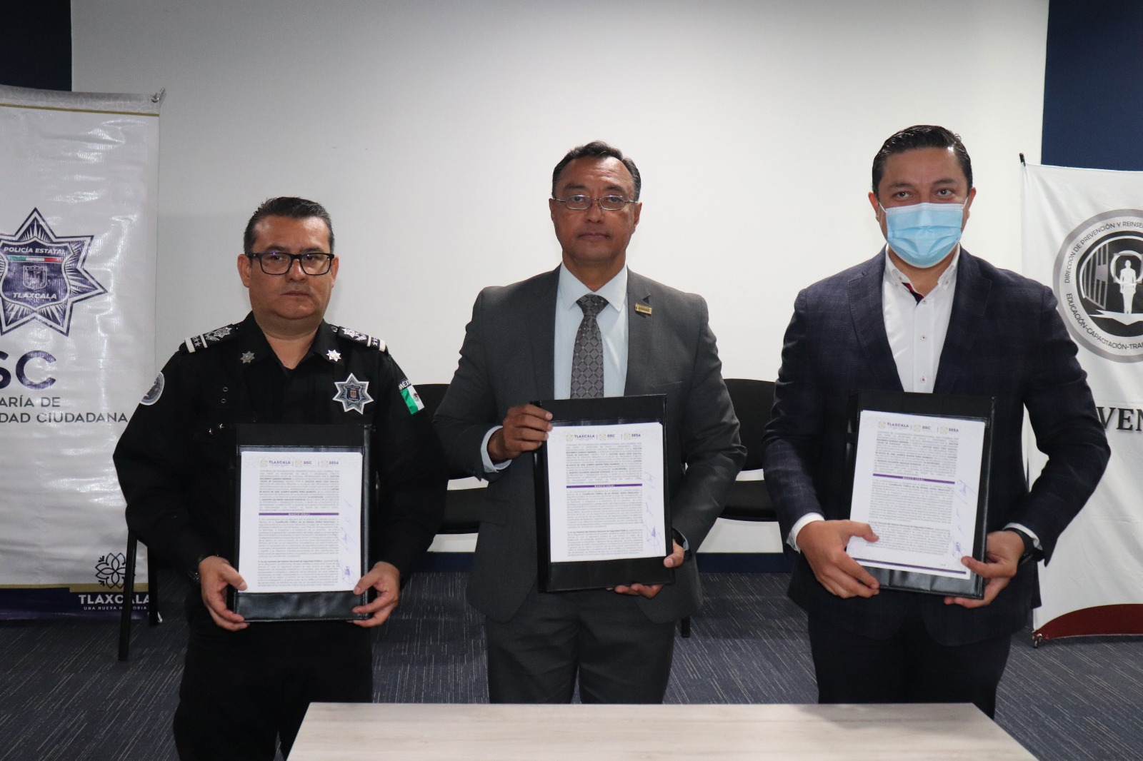 Tlaxcala, Tlax., a 14de septiembre 2023 (Redacción).-La Secretaría de Seguridad Ciudadana (SSC), a través de su Dirección de Prevención y Reinserción Social, signó este jueves un convenio de colaboración con la Secretaría de Salud y Organismo Público Descentralizado Salud de Tlaxcala (O.P.D.), el cual se llevó en las instalaciones de la policía estatal.